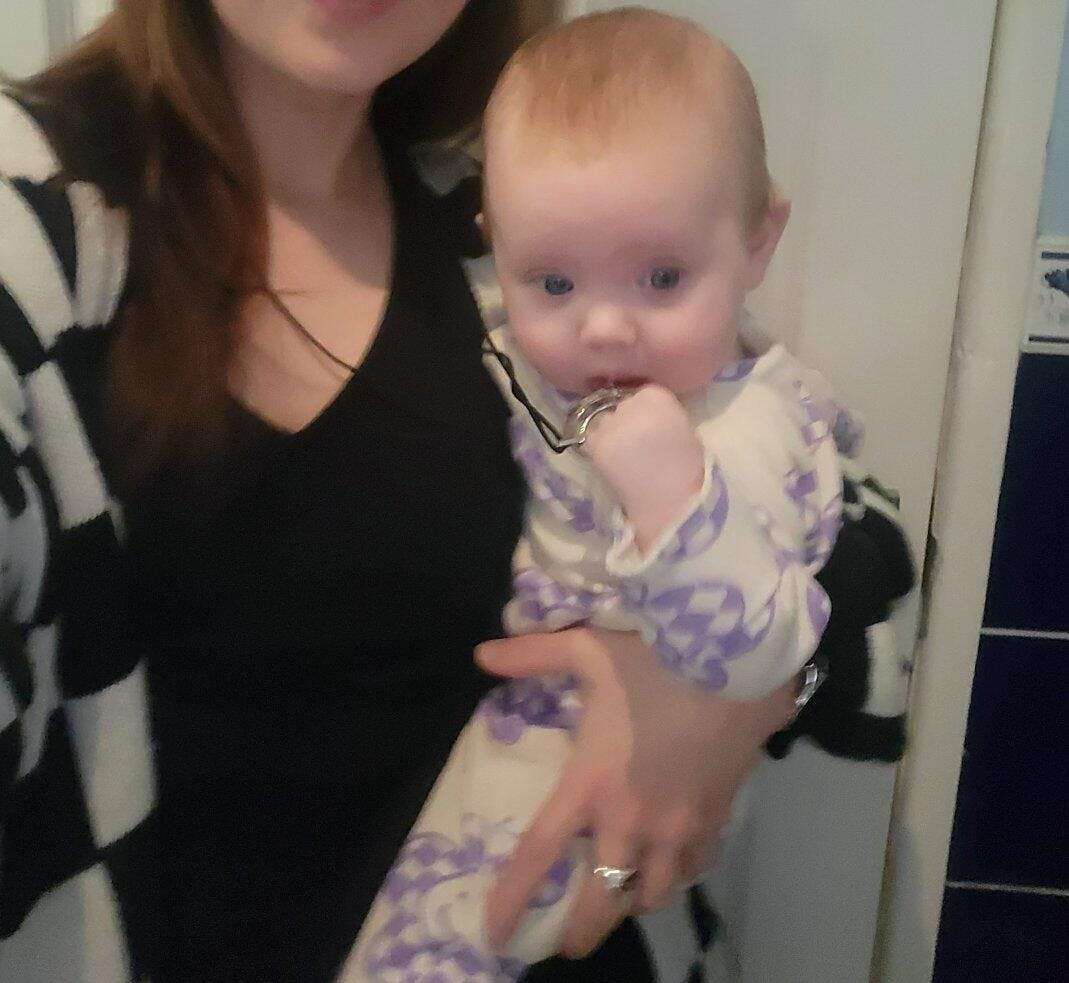 Worn close to your chest, the interlinked rings give babies something safe and soothing to hold during breastfeeding or bottle feeding, helping reduce pulling, scratching, and distraction — while quietly carrying the names, dates, or words that matter most to you.